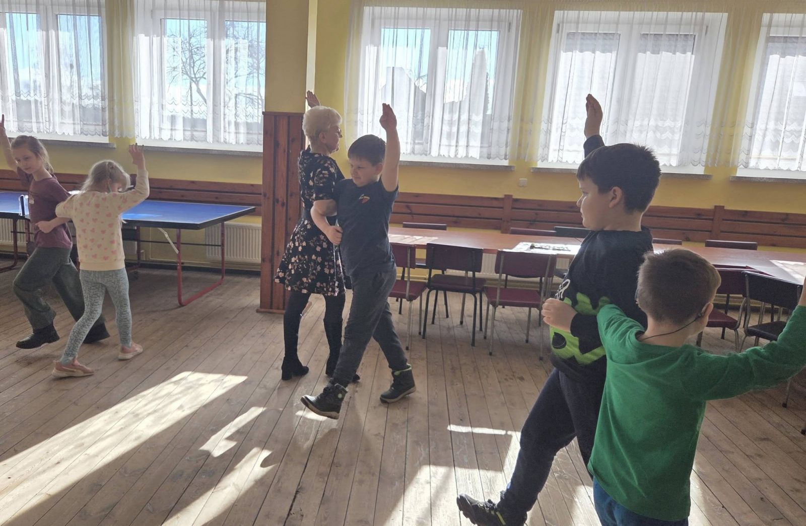 " Wesołe ferie" dzisiaj w Wersku. Zajęcia taneczno - muzyczne z dziećmi prowadzone przez
